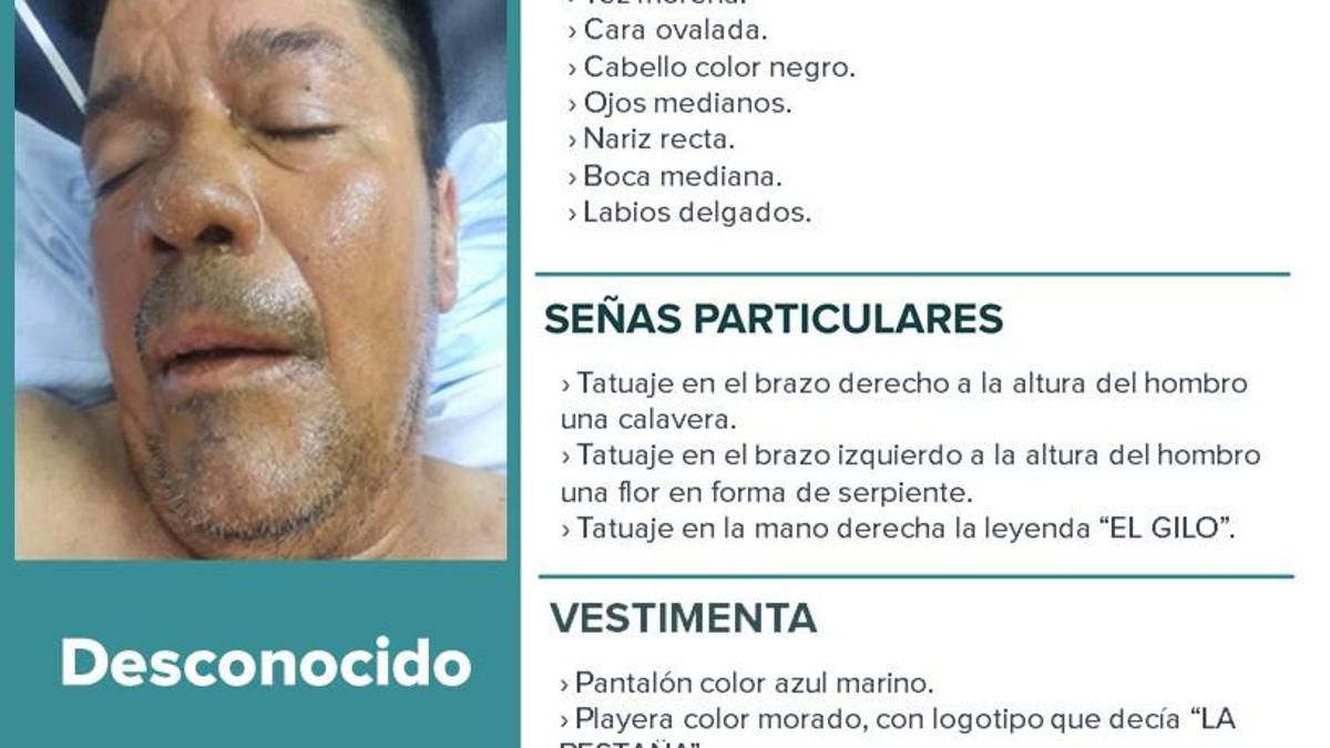 El desconocido vestía un pantalón color azul marino y una playera morada con un logotipo que decía “LA PESTANA”. Esta información adicional podría ser útil para quienes hayan tenido contacto con él o lo hayan visto en algún momento reciente.