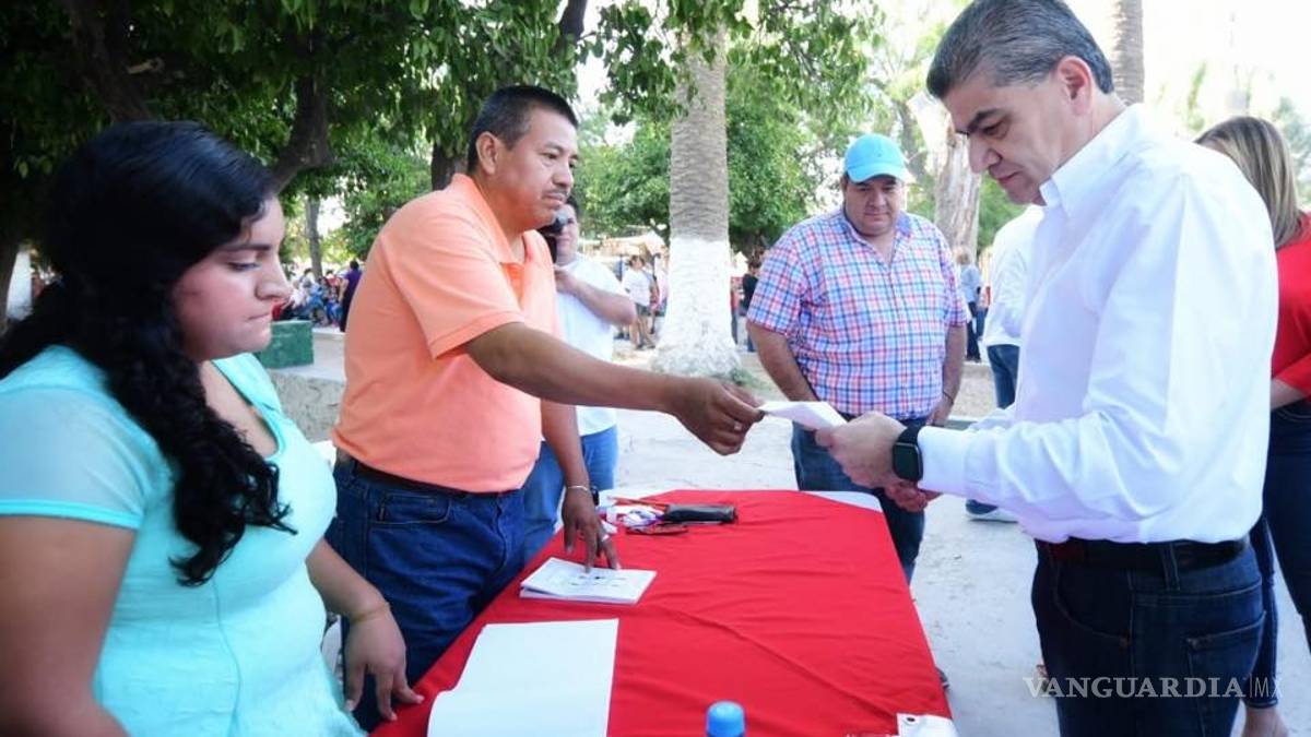 El gobernador Miguel Ángel Riquelme Solís, emitió su voto en la casilla instalada en la plaza principal del ejido La Paz, siendo acompañado de la senadora Verónica Martínez y Xavier Herrera Arroyo, subsecretario de Egresos, quienes también votaron.