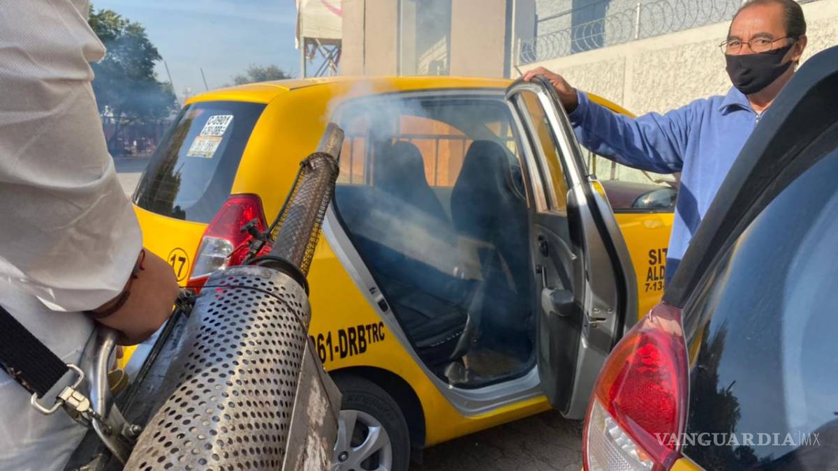 Desde las ocho de la mañana se reciben grupos de taxis para verificar que cumplan con las normas sanitarias y la inhabilitación del asiento del copiloto para evitar el sobrecupo en las unidades. Se aplica un químico sanitizante que dura su efecto por cinco días, eliminando bacterias y virus en la unidad.