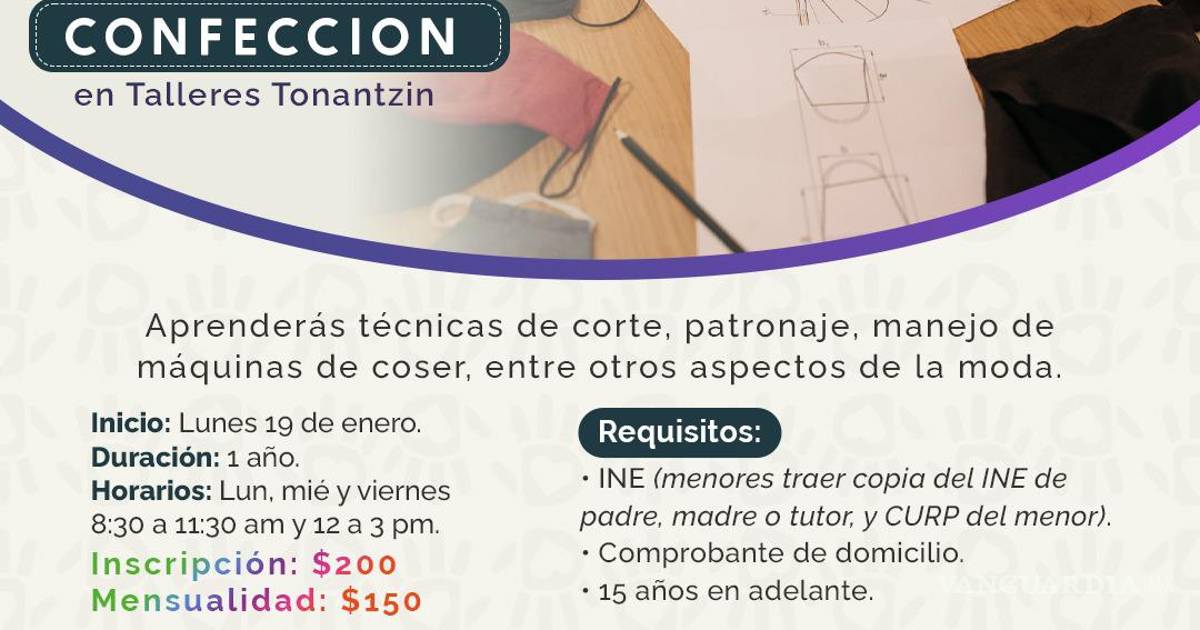 Se impartirá en los Talleres Tonantzin y tiene como objetivo enseñar técnicas de diseño y costura para fomentar el desarrollo personal y el autoempleo