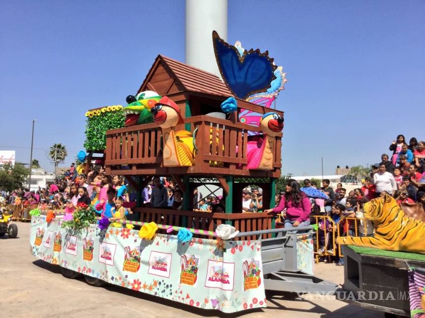 Torreón.- Decenas de carros alegóricos y personajes de animación participaron hoy en el desfile de la primavera presenciado por miles de laguneros, desde el vado del río Nazas hasta la alameda Zaragoza.