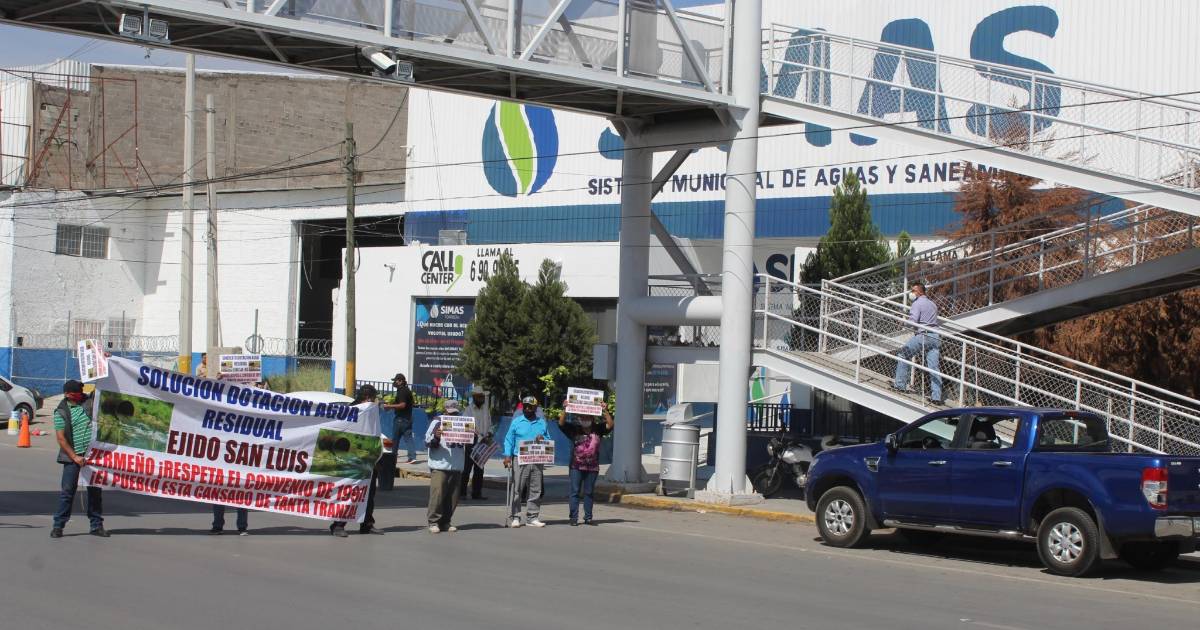 José Cruz Hernández Palacios mencionó que en mayo el Sistema Municipal de Aguas y Saneamiento (Simas) realizó una obra de desagüe enfrente del ejido San Luis, en el periférico de Torreón, donde, según dijo, rompieron tubería que afectó la entrega de aguas residuales que utilizan para los cultivos, como forraje y alfalfa.