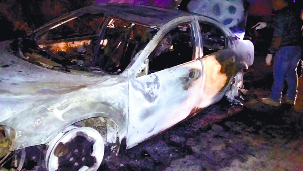 De inmediato se trasladaron policías municipales y confirmaron el aviso y a los pocos minutos arribaron los elementos del Cuerpo de Bomberos que combatieron el fuego pero el vehículo quedó calcinado.