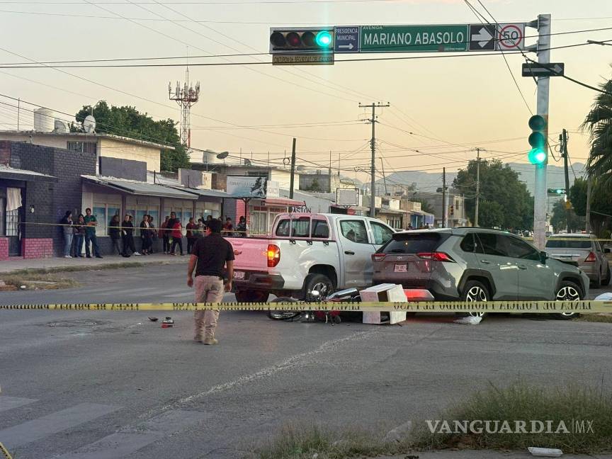 El percance se registró en la intersección de la calle Siglo de Torreón y la avenida Abasolo, una zona de circulación constante donde el flujo vehicular suele incrementarse durante la tarde. Según el reporte inicial, dos camionetas y una motocicleta participaron en la colisión, lo que ocasionó que la víctima quedara gravemente lesionada.