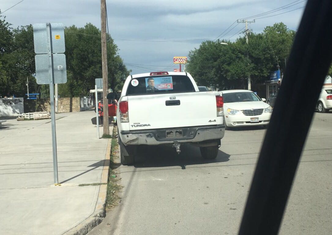 Sabinas, Coahuila.- Durante un evento que se llevó a cabo en el Casino Corona con la presencia de Miguel Riquelme, candidato del PRI por la gubernatura de Coahuila, el diputado Antonio Nerio Maltos fue infraccionado por Tránsito Municipal luego de estacionar su vehículo en sentido contrario y en un cajón exclusivo para transporte público.