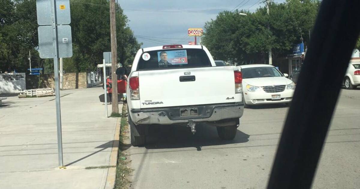 Alrededor de las 15:00 horas, el elemento de Seguridad Pública aplicó la infracción a la camioneta Tundra en la esquina de la calle Independencia y Altamirano de la colonia Centenario, a unos metros de las instalaciones donde se llevó a cabo el evento político.