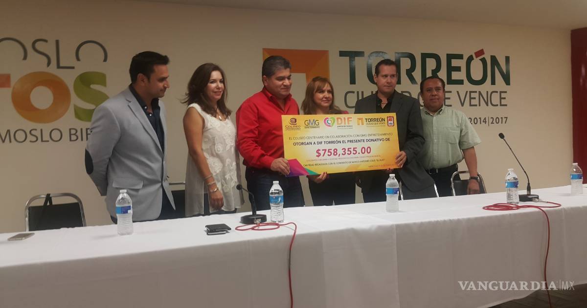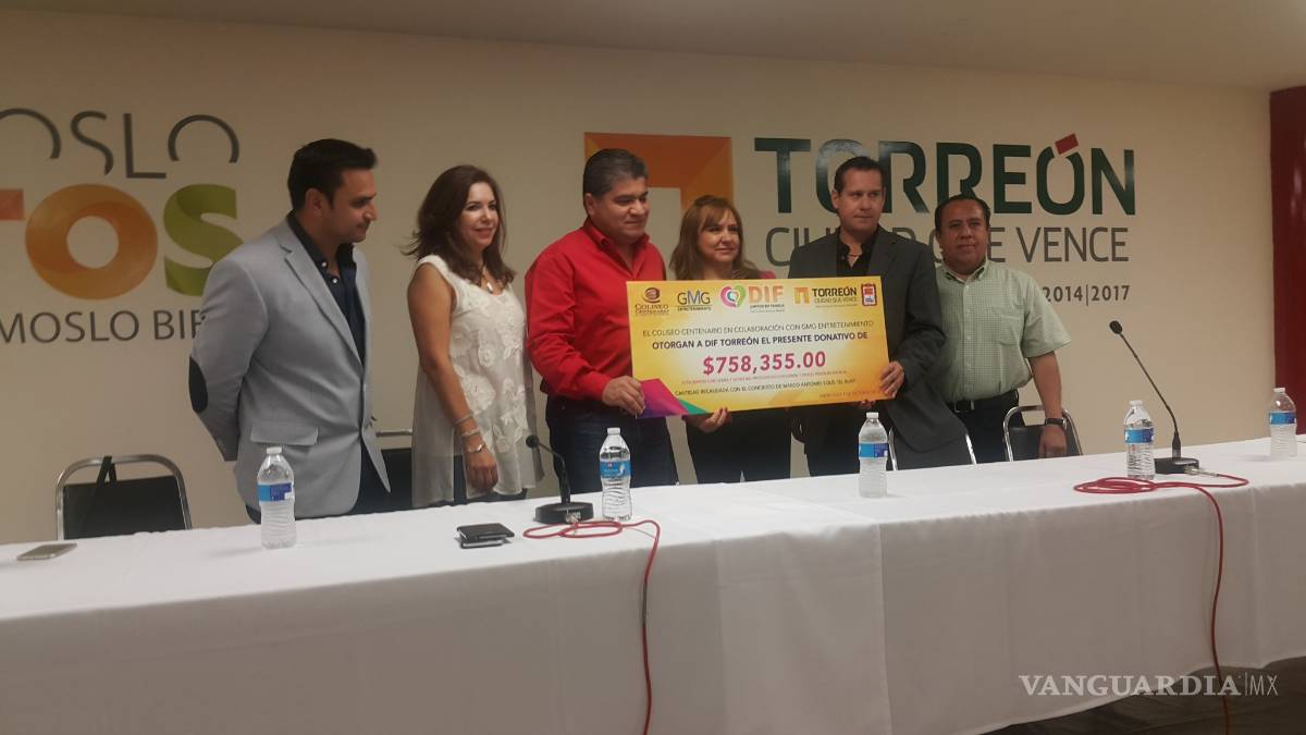 Torreón, Coahuila.- Un donativo de 758 mil 355 pesos, fue entregado al Sistema para el Desarrollo Integral de la Familia (DIF) por la empresa que organizó el concierto del popular cantante Marco Antonio Solis.