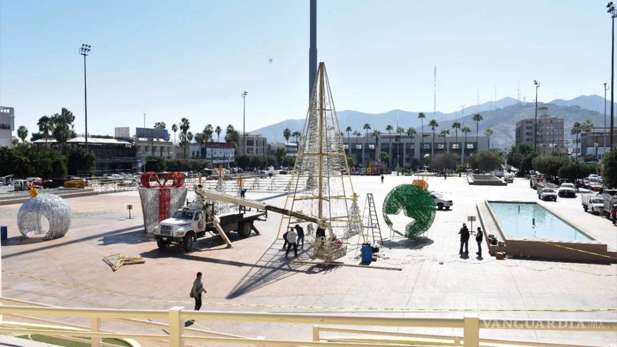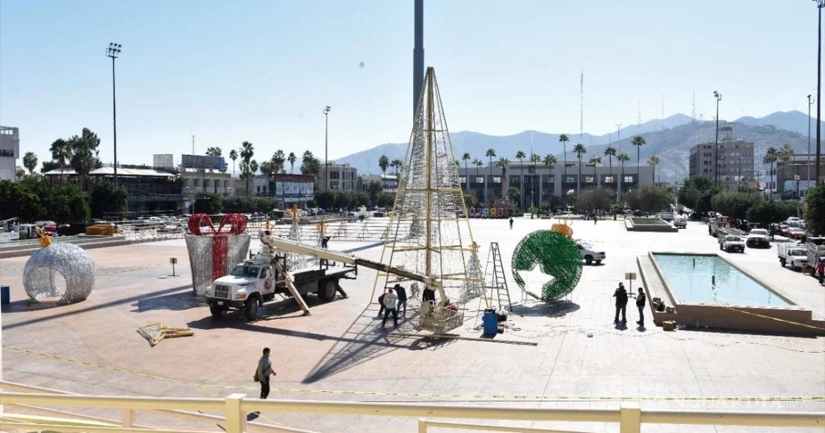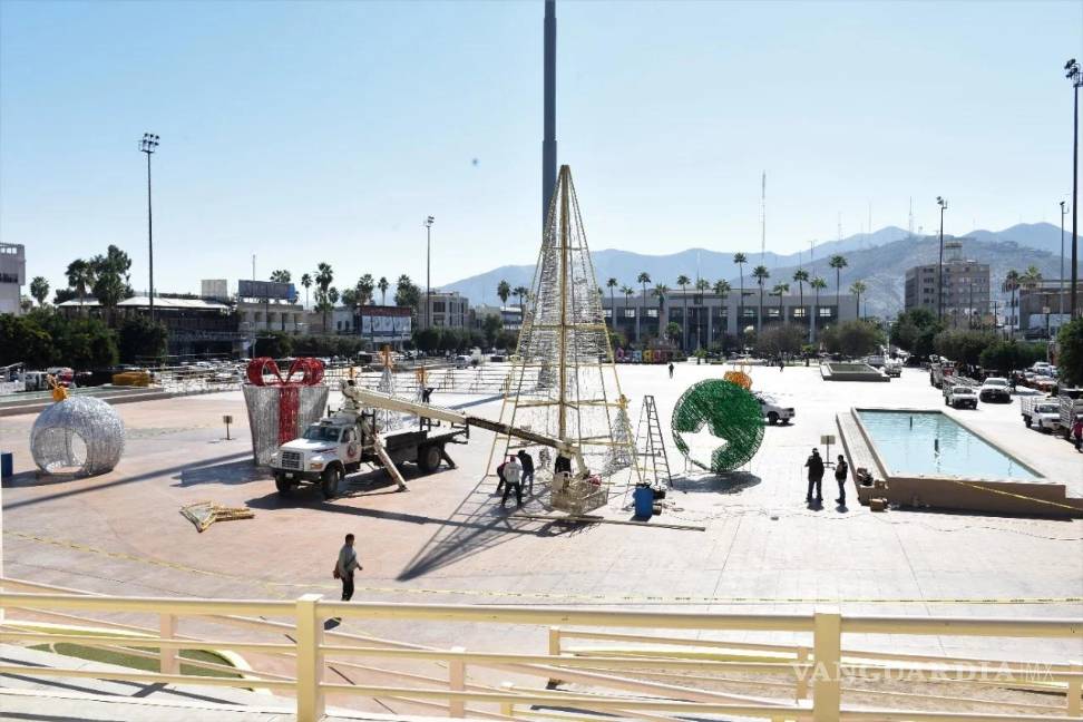 TORREÓN, COAH.— La instalación del árbol navideño monumental comenzó la mañana de este viernes en la explanada de la Plaza Mayor, donde autoridades municipales informaron que estará listo la próxima semana.