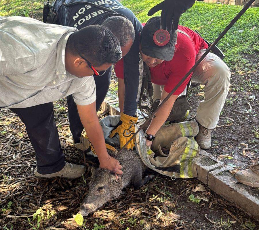 El ejemplar fue localizado por trabajadores y bomberos de la Subestación Norte, encabezados por Margarito Castro. Después de una intensa persecución por varias calles del sector, el jabalí ingresó a la cochera de una vivienda, donde fue acorralado y asegurado.