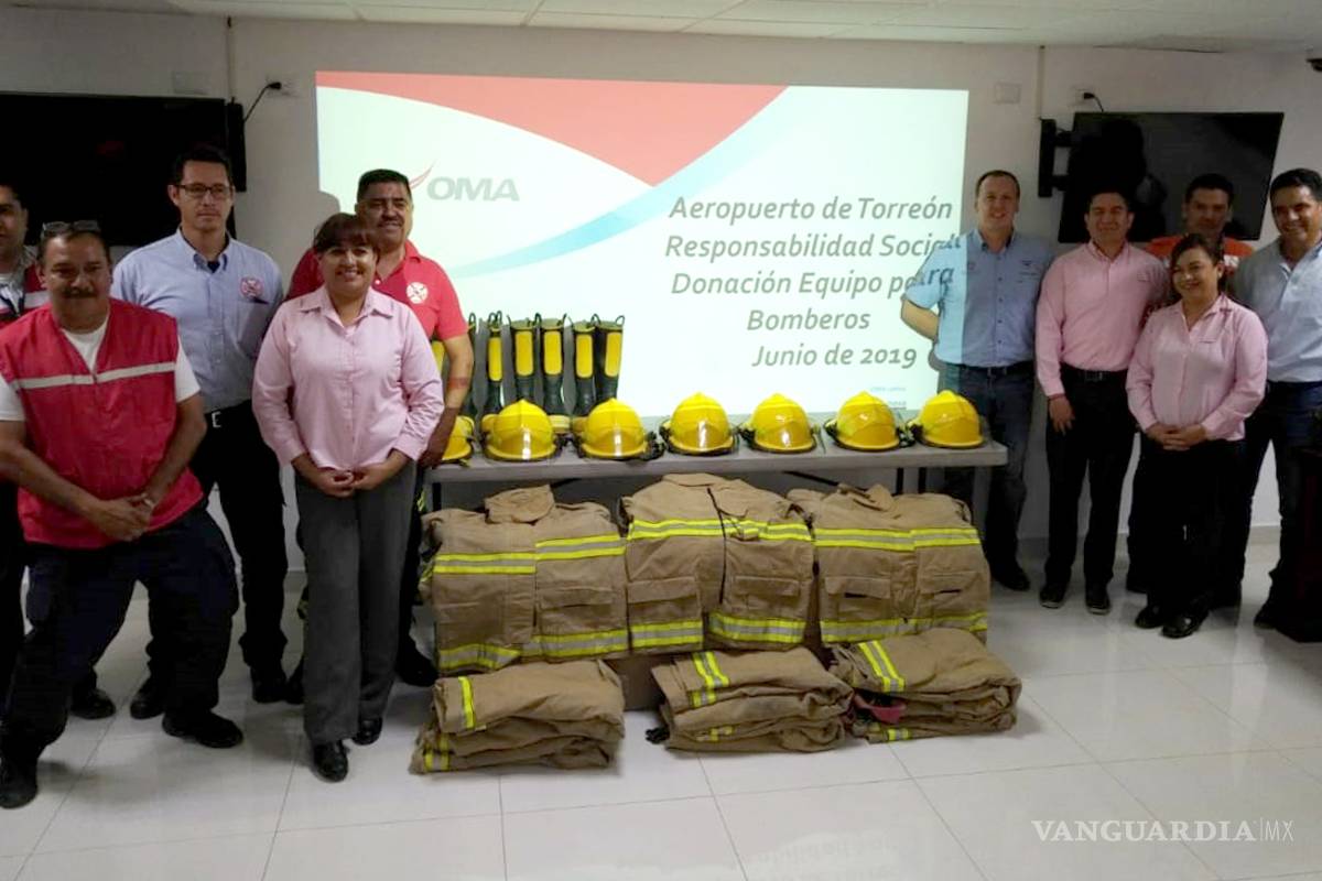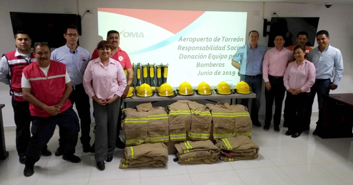 El aeropuerto de Torreón, a través del Grupo Aeroportuario Centro Norte OMA, como empresa socialmente responsable, realizó la donación de 16 chaquetones, 16 pantalones, 19 cascos y 14 pares de botas. Fue el Ingeniero Román Martínez Castro, administrador del Aeropuerto Internacional de Torreón, quien realizó la entrega al departamento.