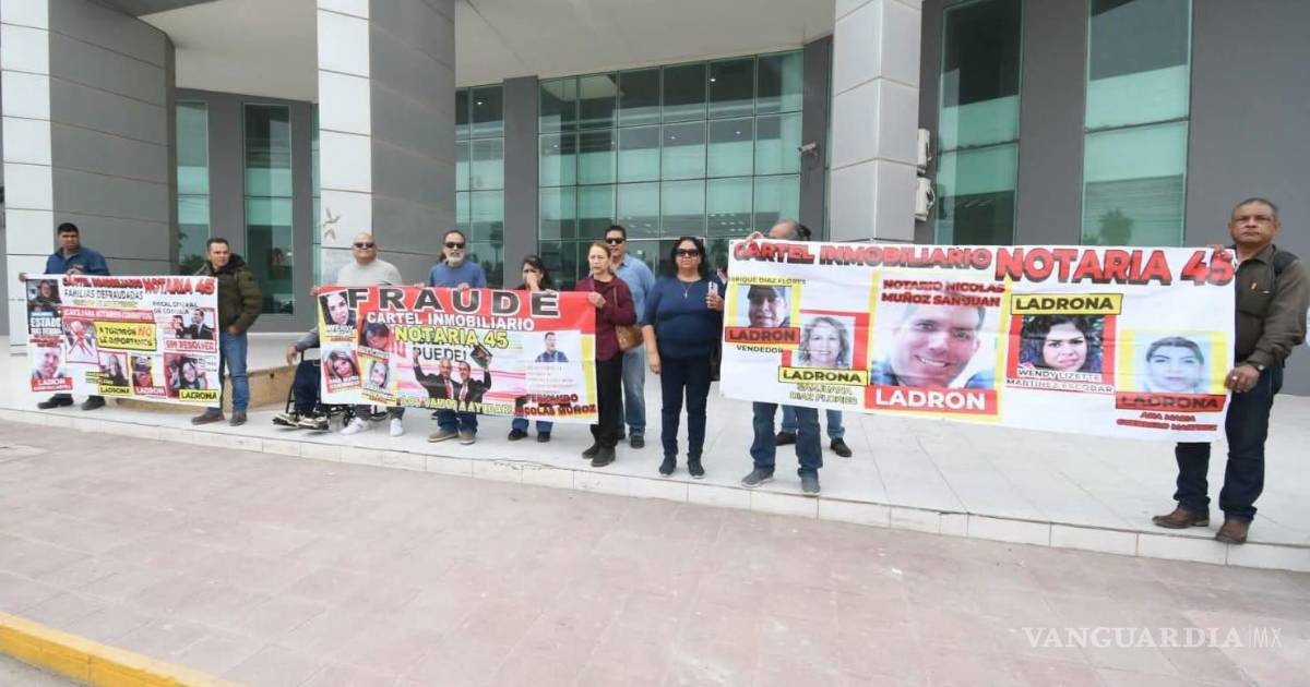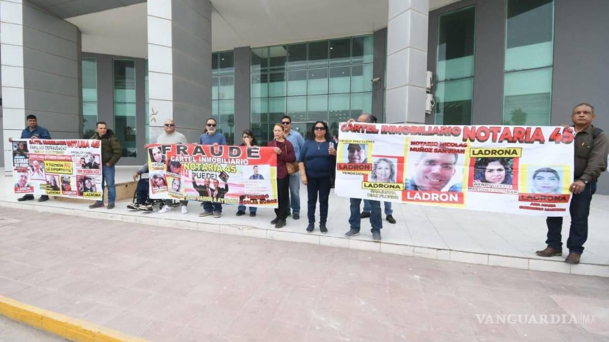 TORREÓN, COAH.– Este jueves, las inmediaciones de la Fiscalía General del Estado (Delegación Laguna I) fueron escenario de una manifestación ciudadana. Los afectados denunciaron un esquema de fraude inmobiliario vinculado a la Notaría 45, el cual ha dejado a decenas de familias sin patrimonio desde 2021 en Torreón.