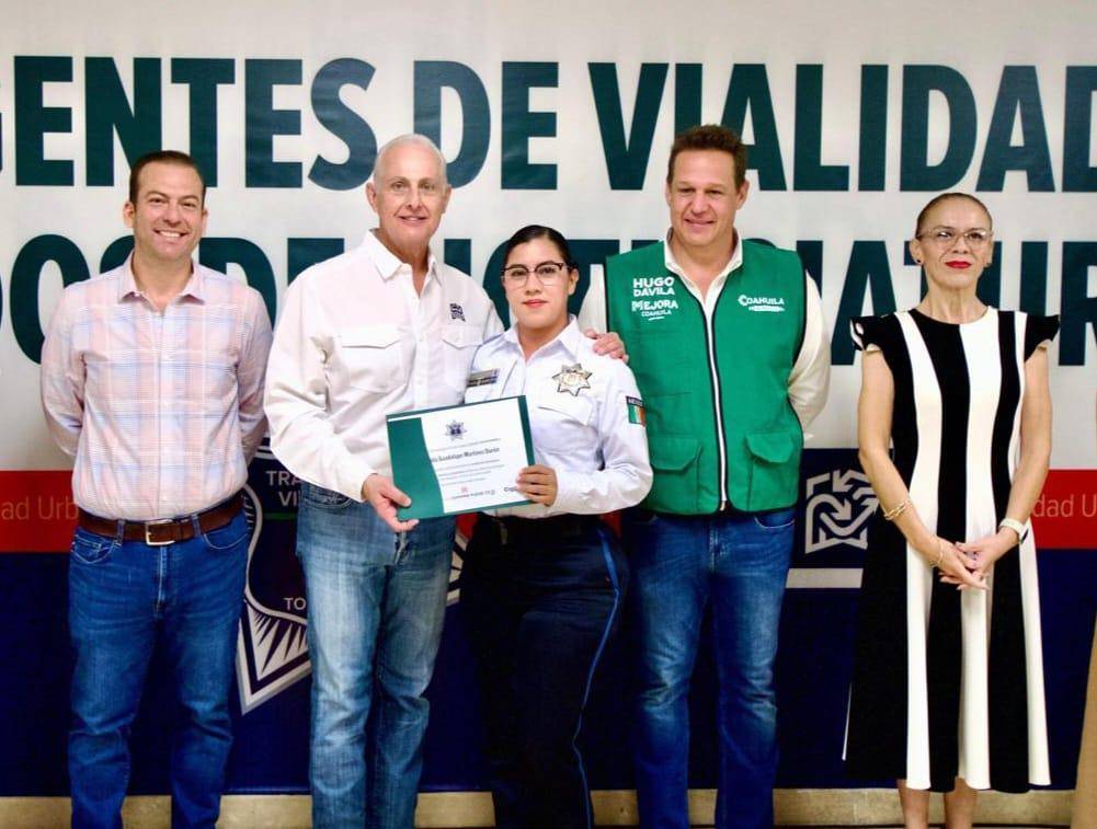En la ceremonia también estuvo presente Hugo Dávila Prado, coordinador de Mejora Coahuila en Torreón, quien reconoció el valor del esfuerzo académico de los agentes y enfatizó que “nunca es tarde para seguirse preparando”.