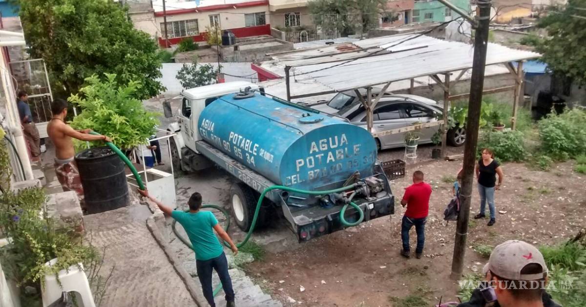 Reparten agua con pipas en colonias afectadas por la corriente del Nazas