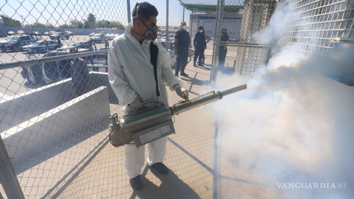 $!Sanitizan oficinas y unidades de Seguridad Pública en Torreón
