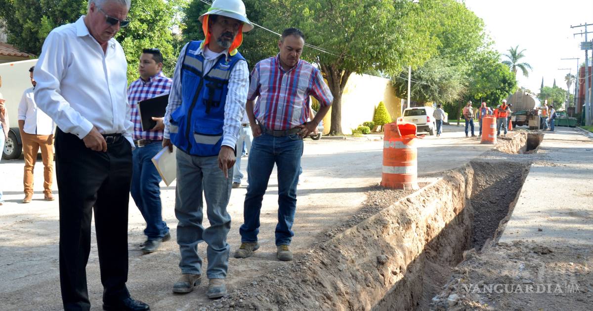 Torreón, Coahuila. - Para revisar la obra de ampliación en las líneas de drenaje y agua potable que se ejecuta en la colonia Campestre La Rosita, este miércoles, el alcalde Jorge Zermeño Infante, realizó un recorrido en el lugar, acompañado por el director de Obras Públicas, Tomás Galván Camacho