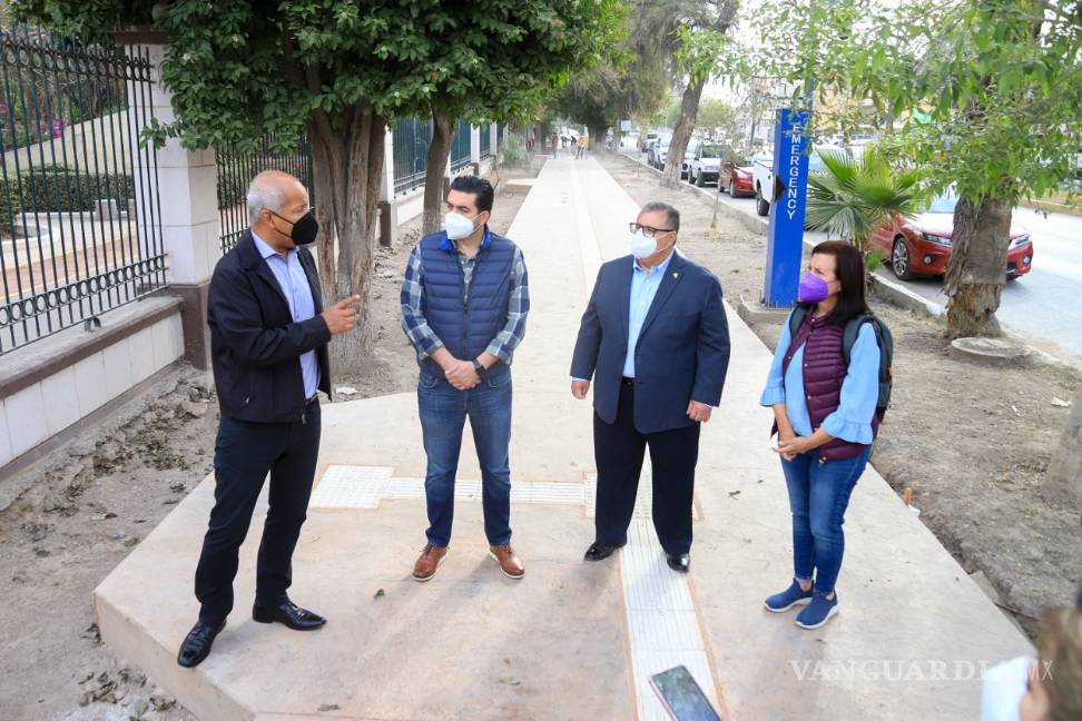 En la restitución total de la banqueta, un perímetro de 2 kilómetros, se tiene un avance de más del 70 por ciento y se trabaja en los accesos para hacerlos más incluyentes, dice alcalde interino de Torreón, Sergio Lara Galván