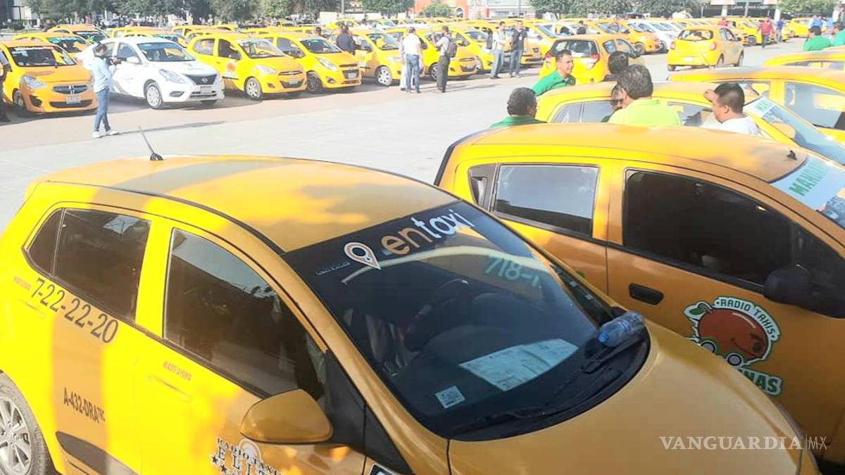 Torreón, Coahuila. – Cientos de taxistas protestaron hoy en la Plaza Mayor contra Uber que ofrece servicio de transporte por aplicación y exigen al municipio prohíba la operación de esta empresa en la ciudad de Torreón.