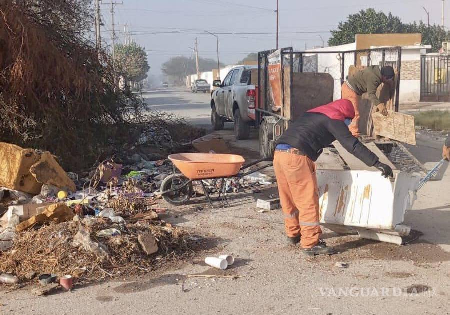 TORREÓN, COAH.- Con el objetivo de erradicar focos de infección y reducir la presencia de fauna nociva, la Dirección de Servicios Públicos reforzó las cuadrillas de limpieza en el sector oriente de Torreón, con trabajos intensivos en colonias como Monte Real, Villa Zaragoza y Campo Nuevo Zaragoza.