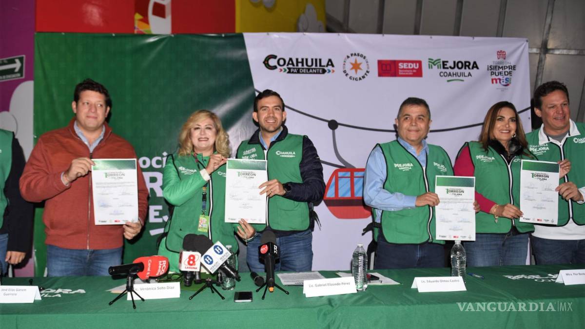 TORREÓN, COAH.- El coordinador general de Mejora Coahuila, Gabriel Elizondo Pérez y la Dirección del Teleférico Torreón, firmaron un convenio para que 20 mil niños de sectores marginados de La Laguna puedan subir al sistema de transporte colgante y visitar el Puerto Noas.