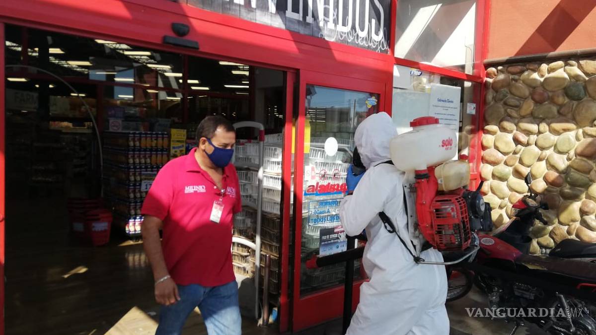 Las cuadrillas de vectores, que pertenecen a la dirección de Salud Pública Municipal realizaron acciones de sanitización en diferentes supermercados como: Soriana Colón, Centro, Verde, así como Al Súper Alameda. También se aplicó el químico sanitizante “forcuat” en las oficinas y el parque vehicular de Mantenimiento Urbano y Espacios Públicos.