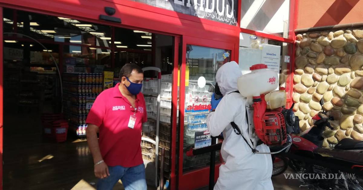 Torreón, Coahuila. - El Ayuntamiento de Torreón, a través de la dirección de Salud Pública Municipal y Servicios Públicos, llevaron a cabo acciones de sanitización en supermercados ubicados en el centro de la ciudad, además de termo-nebulizar el interior del Mercado Juárez.