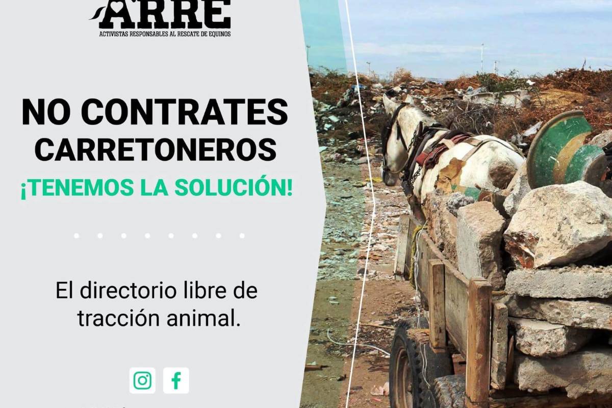 TORREÓN, COAH.- La asociación civil Activistas Responsables al Rescate de Equinos (ARRE), que trabaja por el rescate y protección de burros y caballos en condiciones de maltrato y explotación lanzó una campaña para recomendar mejor la contratación de servicio motorizado y evitar la contratación de carromateros con tracción animal.