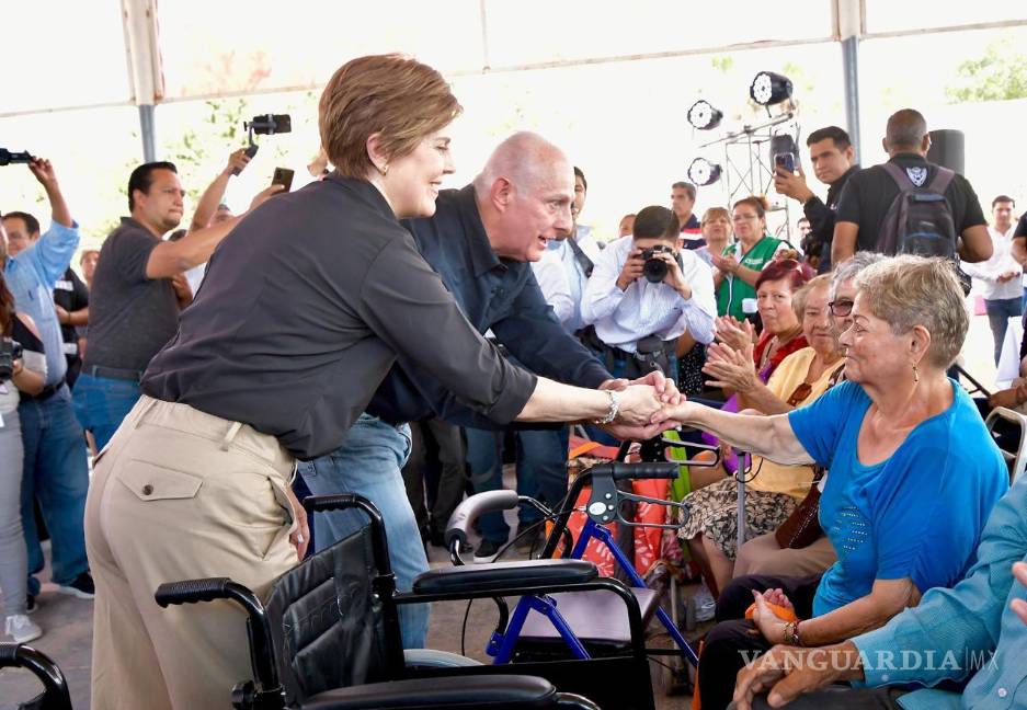 Durante la actividad, el alcalde y la presidenta del DIF Torreón, Selina Bremer, entregaron andadores, sillas de ruedas y bastones a personas en situación de vulnerabilidad.