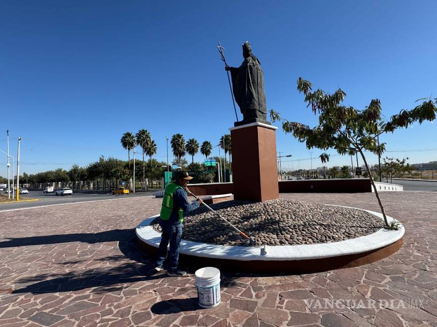 Torreón: Realizan jornada de embellecimiento en la Glorieta Juan Pablo II