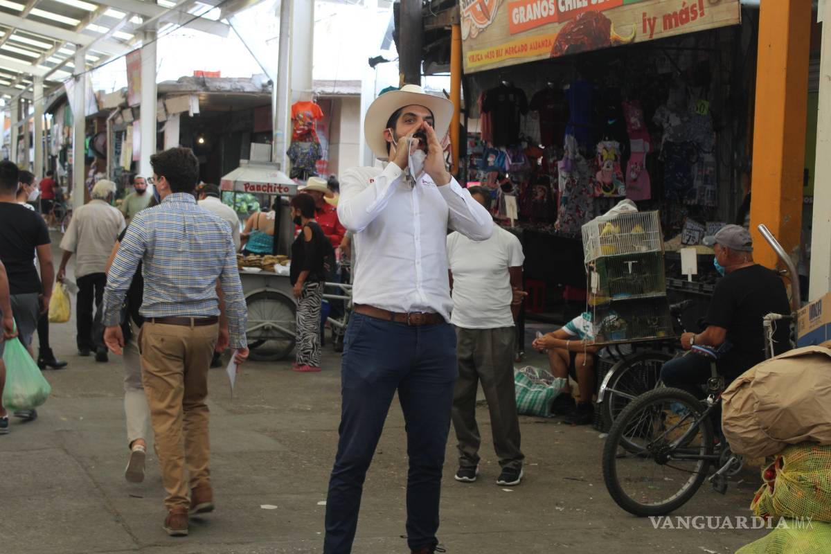 TORREÓN, COAH.- El aspirante a la secretaría general de Morena, Antonio Attolini Murra, acompañó en un recorrido por el mercado Alianza de Torreón al candidato por el distrito IX, Cristian López. Attolini Murra consideró que el principal reto será el tema de salud y poder convocar a la mayor cantidad de personas para que ejerzan su voto en un proceso que de por sí es “huérfano” por solo elegir diputados locales.