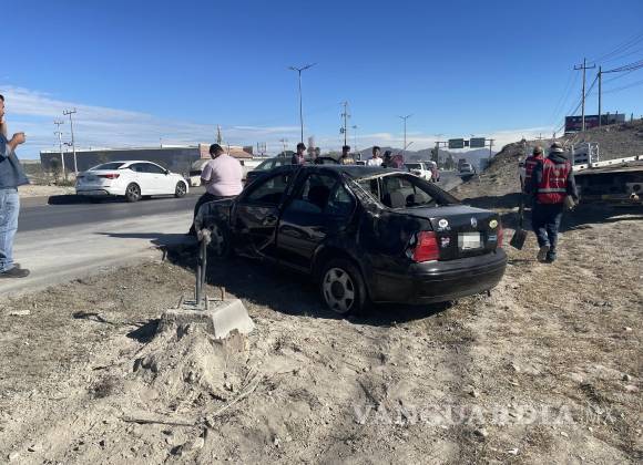 Una joven resultó mal herida en un choque y volcadura, que se registró en la carretera Monterrey-Saltillo, frente al aeropuerto Plan de Guadalupe en Ramos Arizpe, Coahuila.