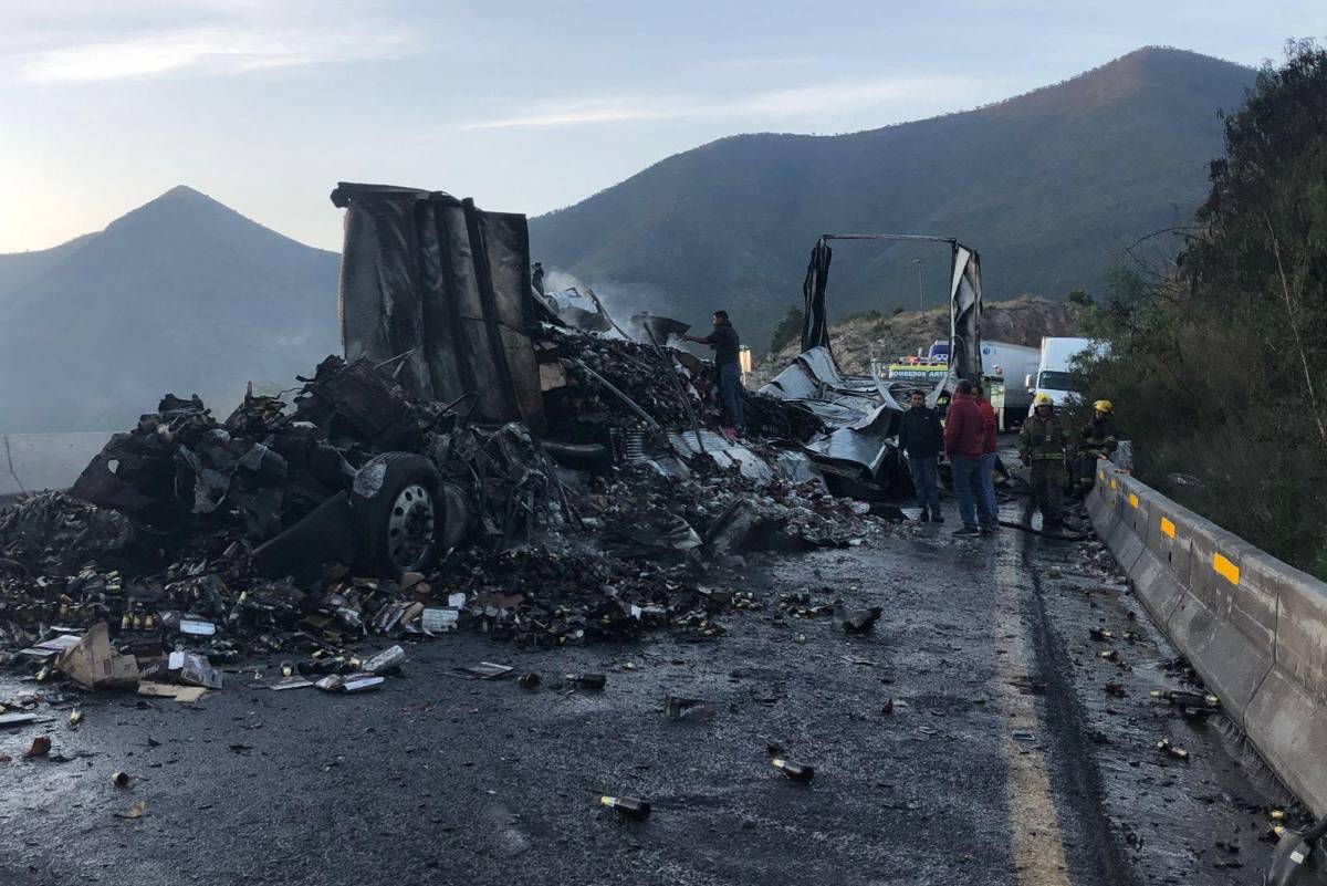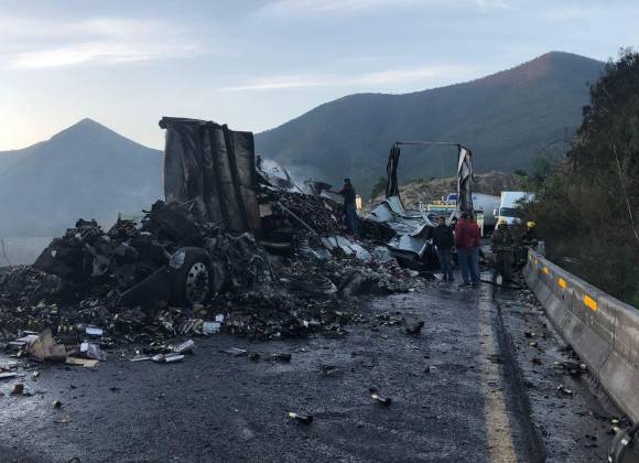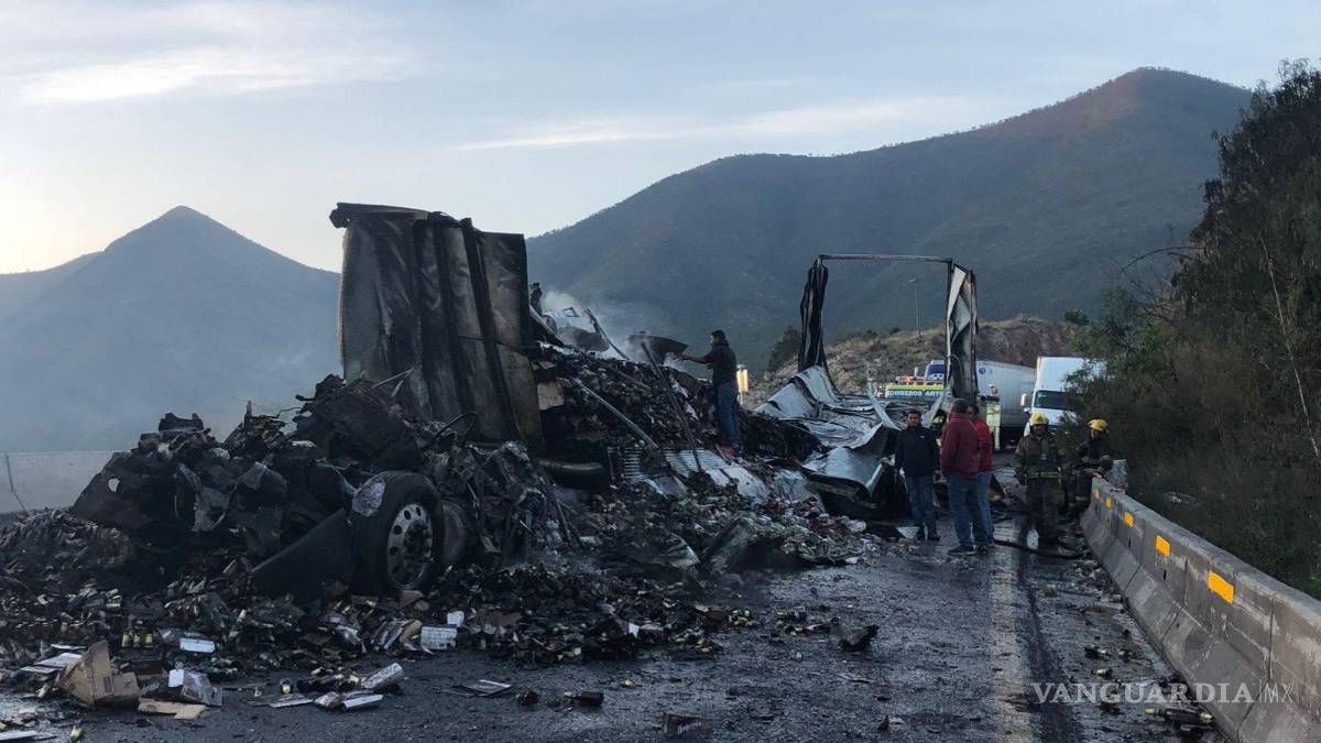 Un choque con incendio de dos trailers mantuvo cerrada la circulación de la carretera federal 57 en el tramo Saltillo-Los Chorros por más de cuatro horas