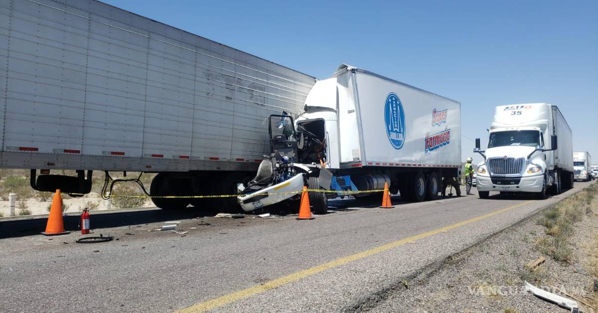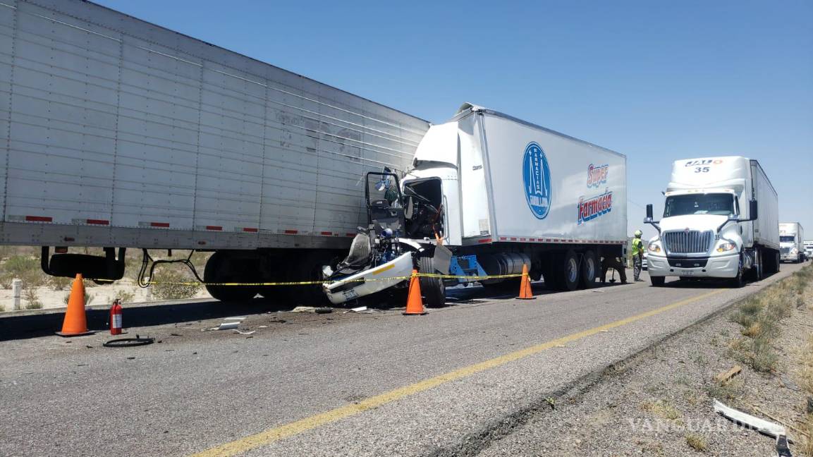 Tráiler de Farmacias Guadalajara se impacta contra otro en la carretera Torreón-Saltillo; hay una persona sin vida