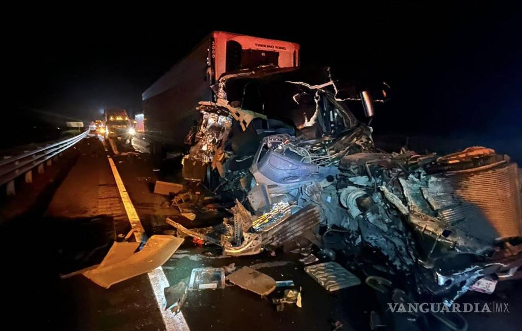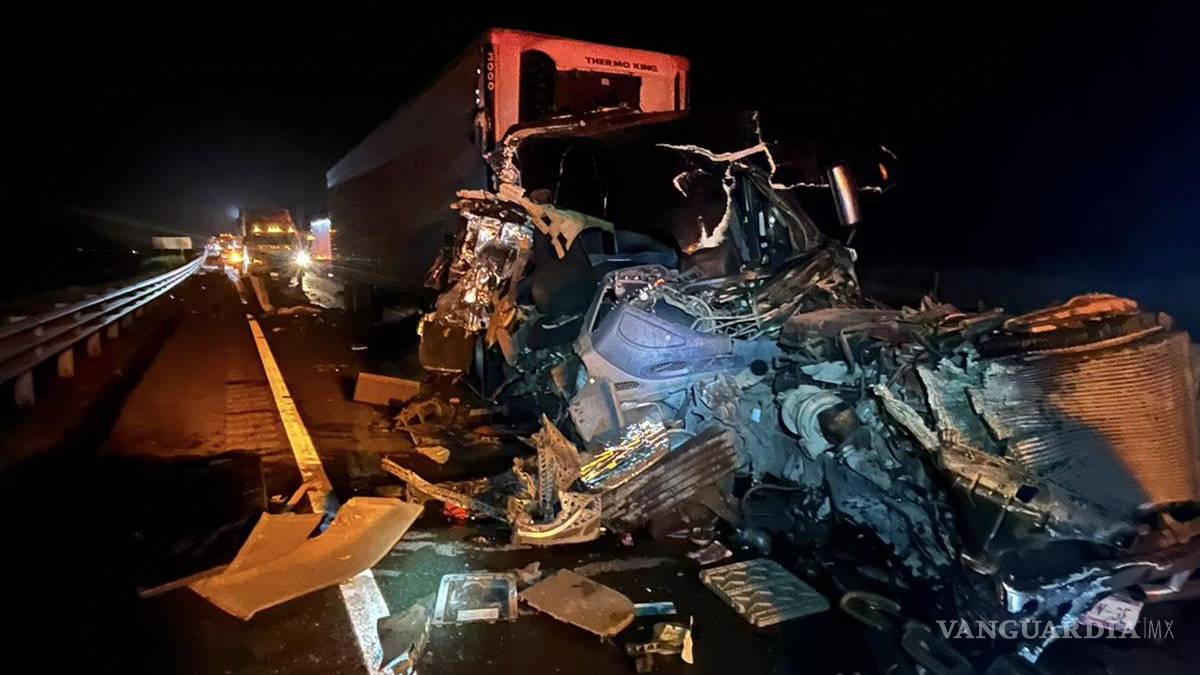 Trailer es destrozado tras choque por alcance en Saltillo; conductor resulta ileso