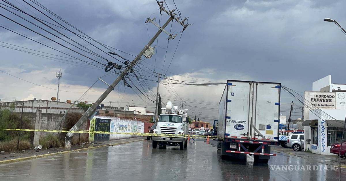 Trailer ‘jala’ poste y casi deja sin luz a colonia al norte de Saltillo; operador seguía al GPS