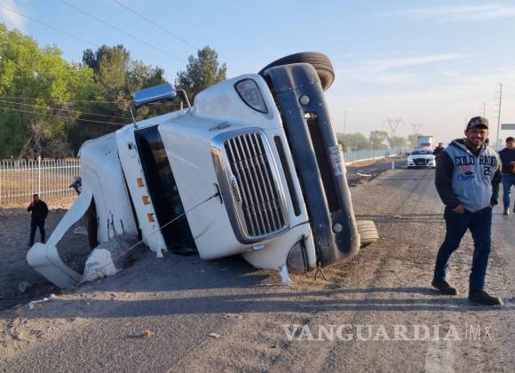 Tráiler pierde el control y vuelca en carretera Saltillo-Monterrey