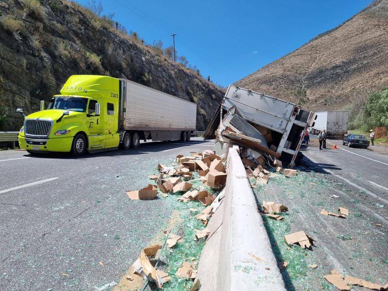 Informes preliminares de la Guardia Nacional división carreteras señalan que el tráiler marca Kenworth perteneciente a la línea TriRomo transportaba más de 20 toneladas de envases de cristal.