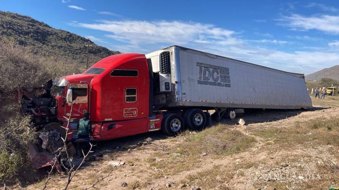 Tráiler se sale del camino, choca y chofer queda inconsciente en carretera a Torreón; rapiñan frutas y verduras