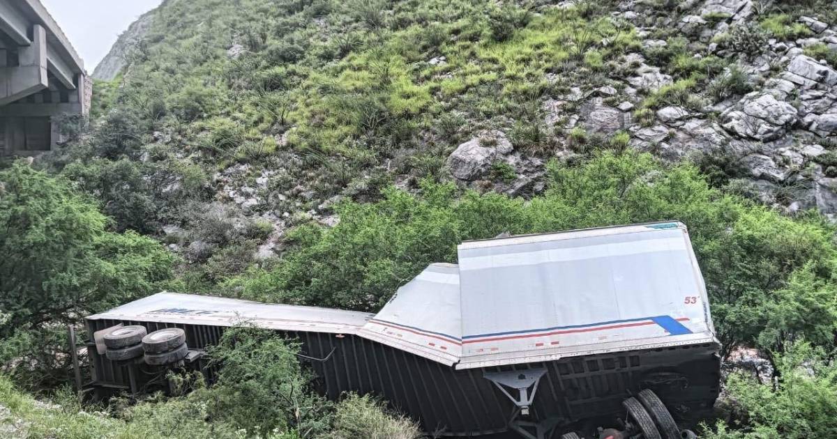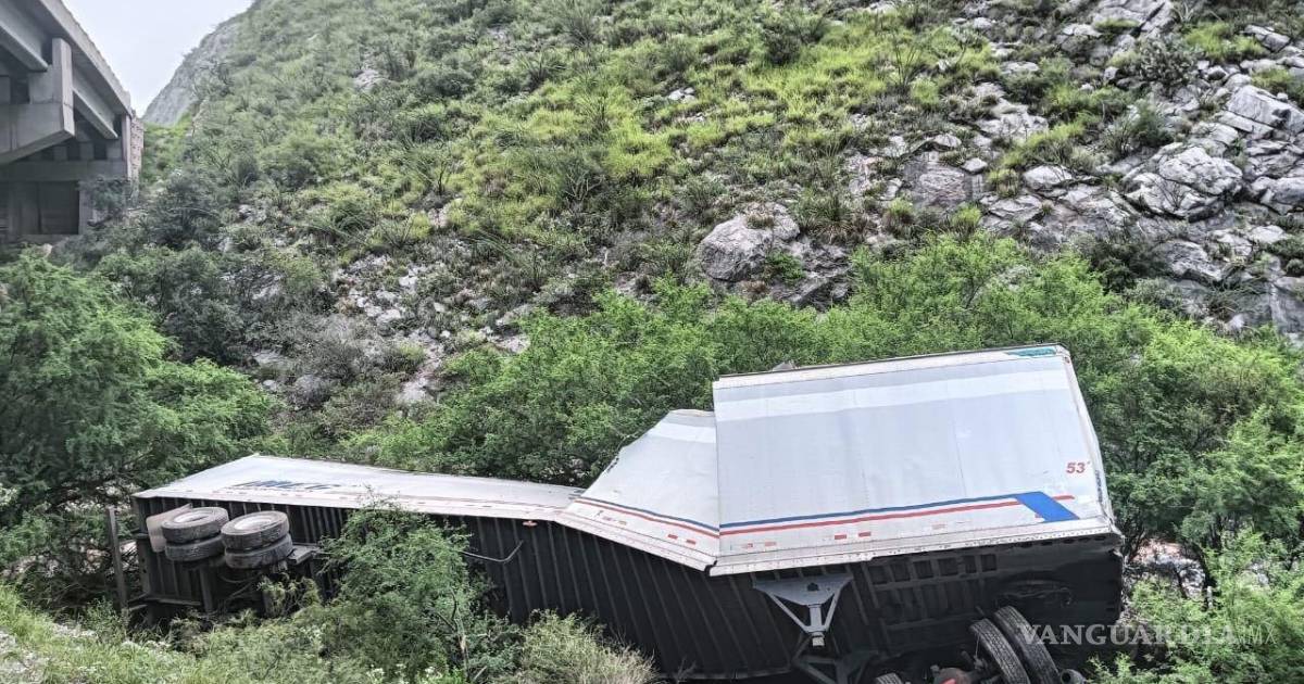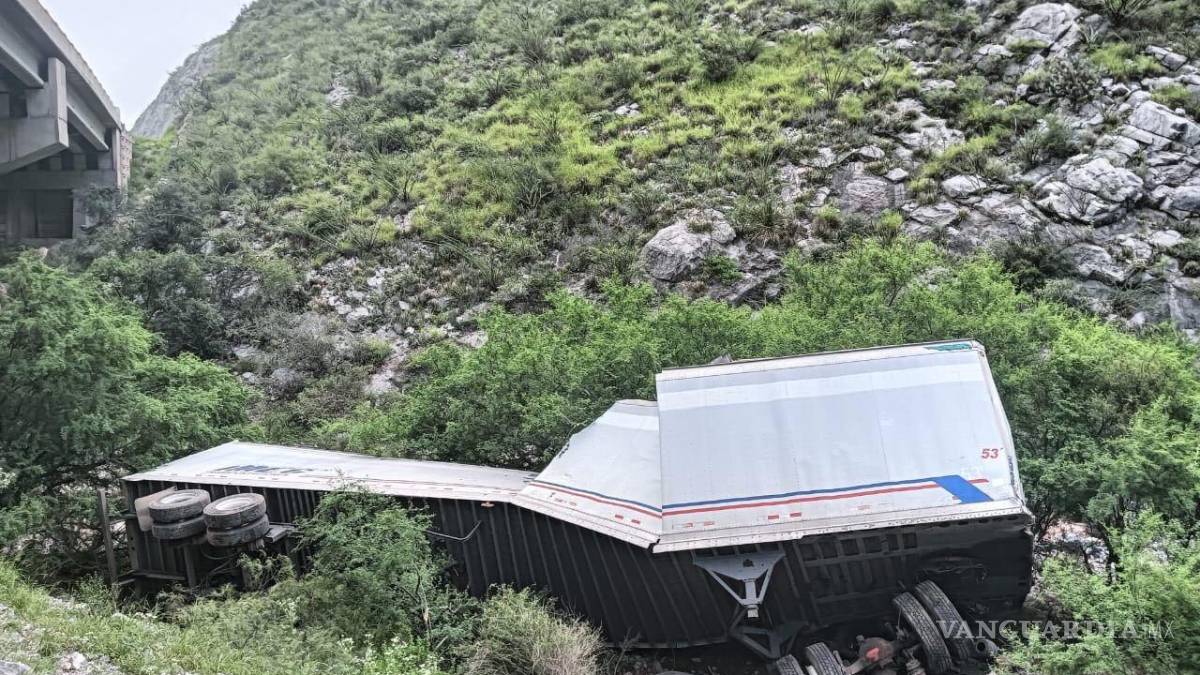 Trailero termina en el fondo de un barranco de la carretera Monclova-Saltillo, en el tramo de ‘La Muralla’