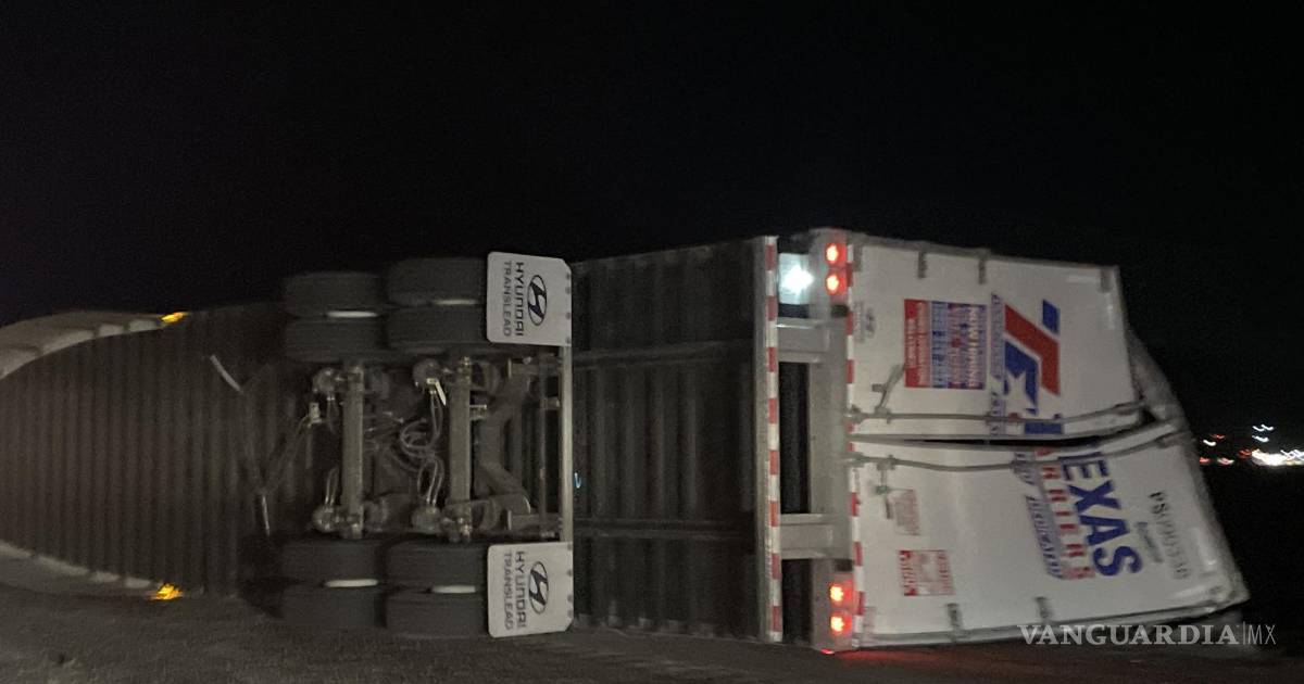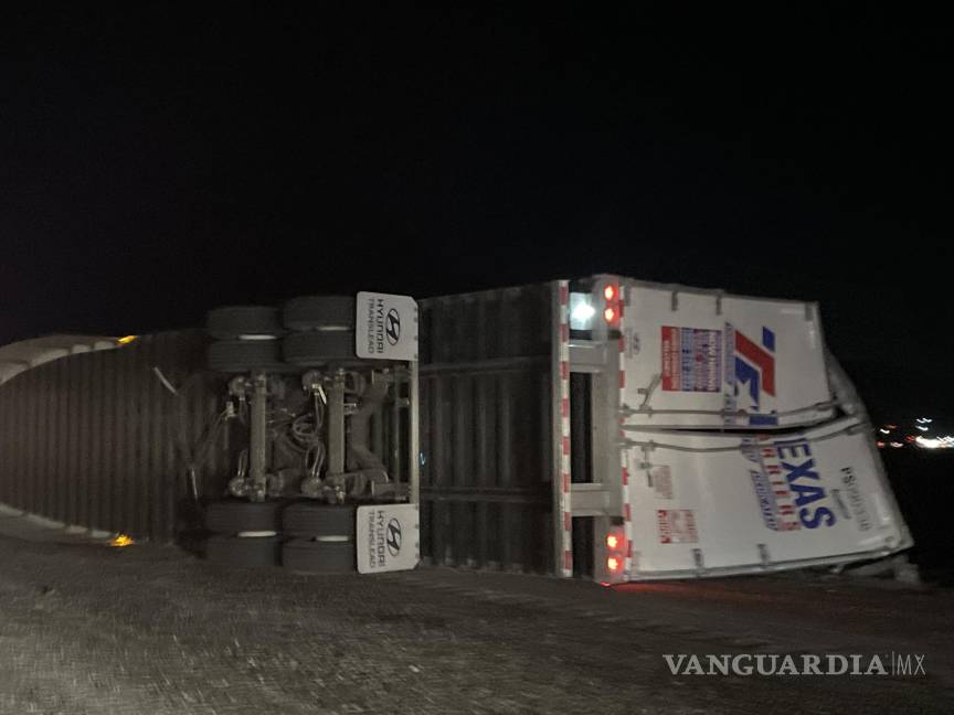 Fue alrededor de la medianoche de este lunes cuando se presentó el accidente en la mencionada vialidad, en dirección a Saltillo, a la altura del kilómetro 39, cuando tras salir de una curva el operador de un tráiler perdió el control y volcó su unidad, bloqueando uno de los dos carriles.