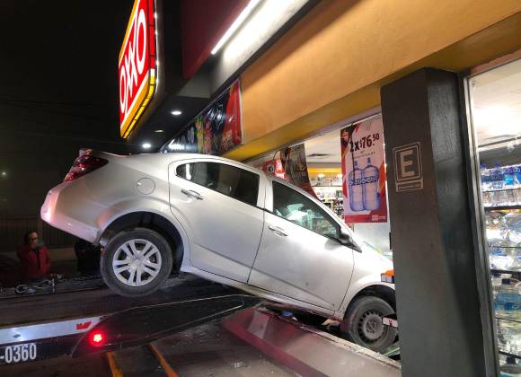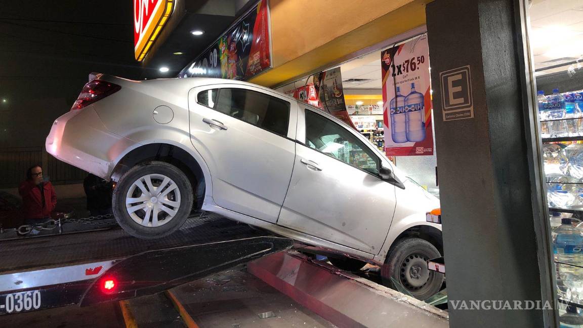 Un joven, que presuntamente se quedó dormido tras el volante, se impactó contra una tienda de conveniencia, en la colonia Morelos de Saltillo, quedando incrustado en el cristal y dejando esparcida la mercancía por el lugar.