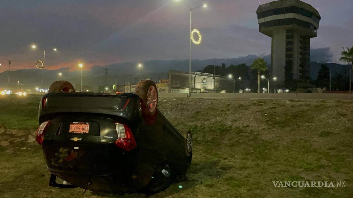 Trata de esquivar a perrito atropellado y termina volcando al oriente de Saltillo