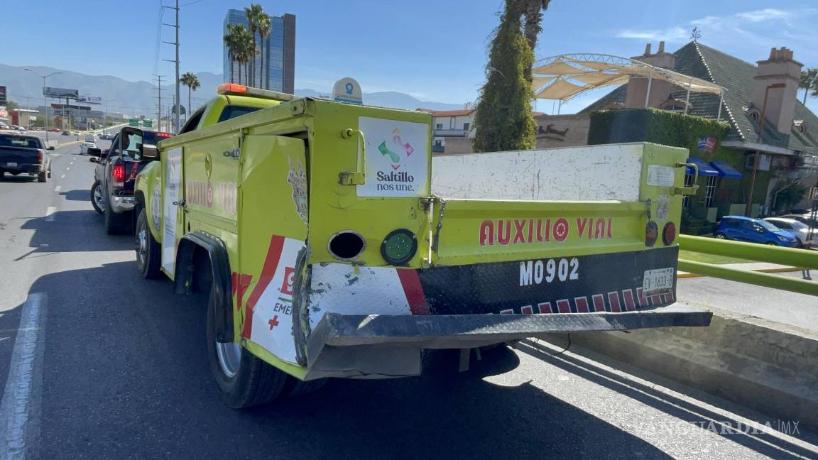 Unidad de Auxilio Vial Saltillo se detiene a socorrer a vehículo varado y otro auto la impacta