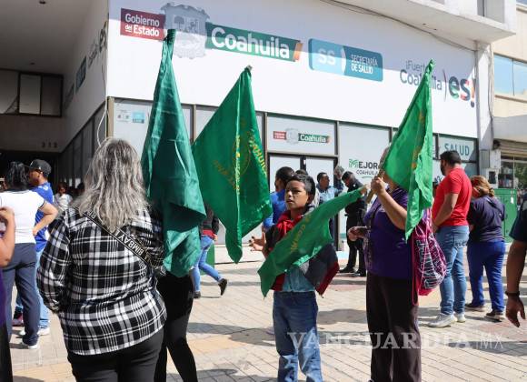 Miembros de la Unión Nacional de Trabajadores Agrícolas de Coahuila (UNTA), se manifiestaron en las instalaciones de la Secretaría de Salud de Coahuila para exigir el servicio médico oportuno y abasto medicamentos en los centros médicos de los diferentes municipios desde los que arribaron a la capital.