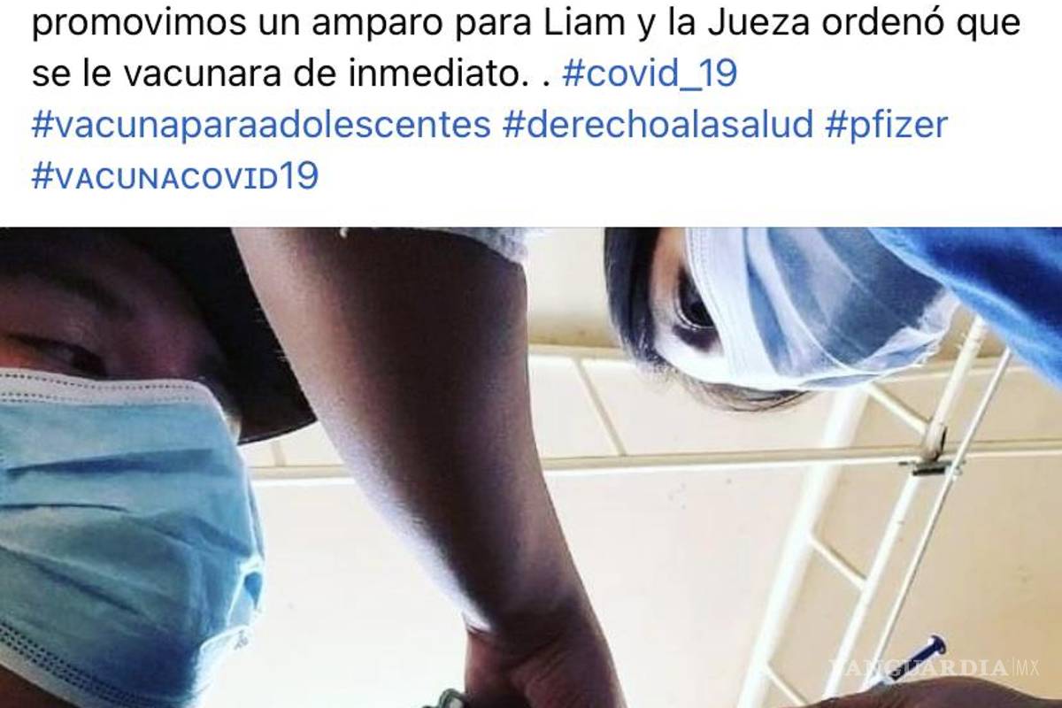 Uno de los de menores vacunados en Saltillo es Liam, 17 años de edad, cuyo caso se ha viralizado en redes sociales, luego de que su madre posteó una imagen de su hijo señalando que esto fue posible gracias al amparo que ella misma promovió al ser abogada y que le fue otorgado por un juez de Distrito en el Estado de Coahuila de la Suprema Corte de la Nación.
