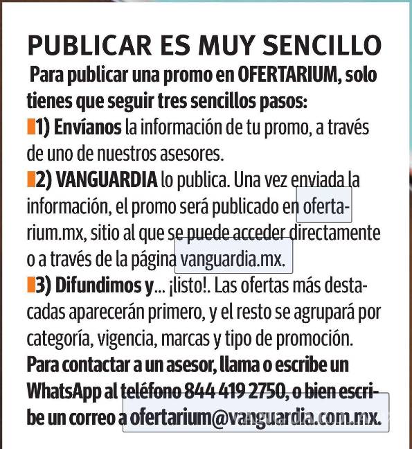 VANGUARDIA pone sus audiencias a tu disposición a través de la plataforma OFERTARIUM: La guía de las promos, la cual agrupa, organiza y difunde las promociones más relevantes disponibles en los negocios con presencia en Saltillo.