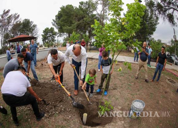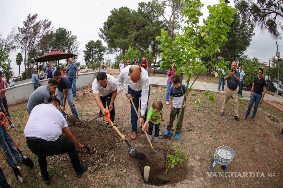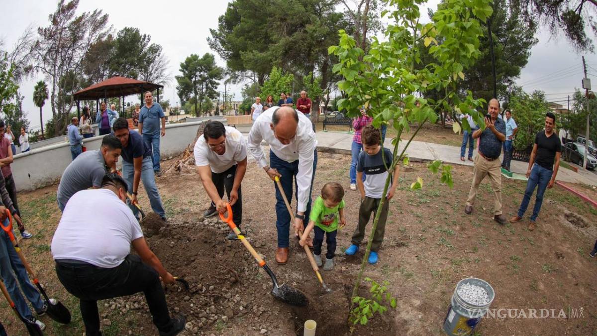 Luego de que los vecinos se organizaran para rescatar la Plaza Latinoamericana, ubicada al norte de Saltillo, el diputado Jericó Abramo Masso donó 20 árboles y prometió instalar juegos infantiles.