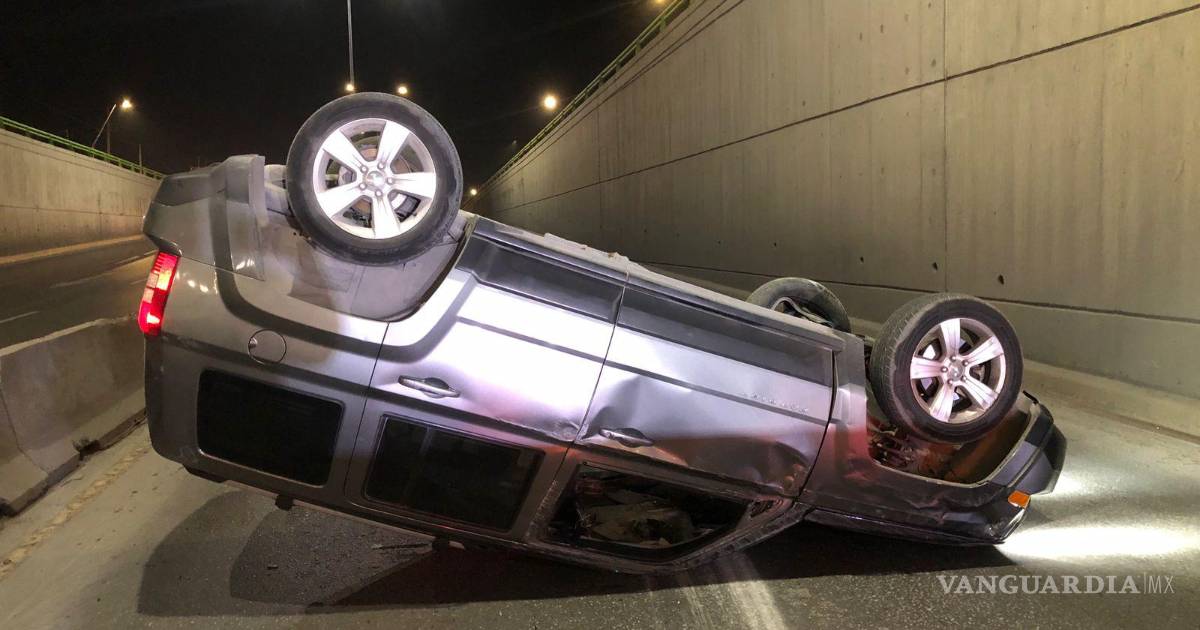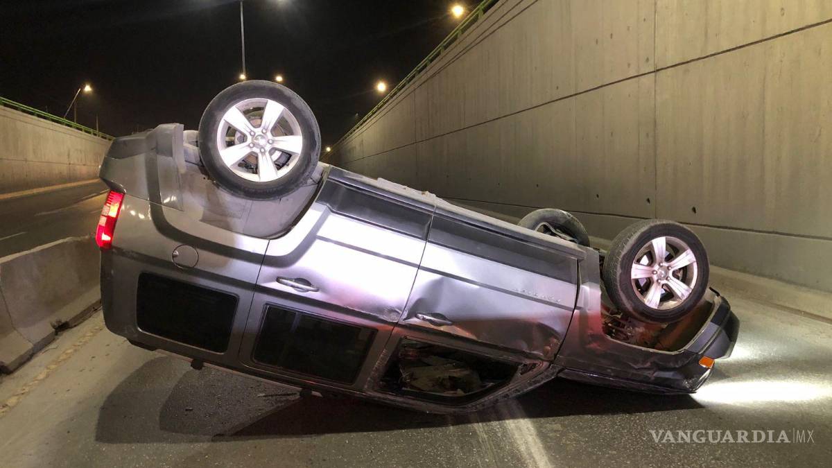 El conductor de una camioneta de la marca Jeep protagonizó una aparatosa volcadura al norte de Saltillo debido a un presunto exceso de velocidad, perdiendo el control del vehículo y terminando con sus llantas apuntando hacia el cielo.