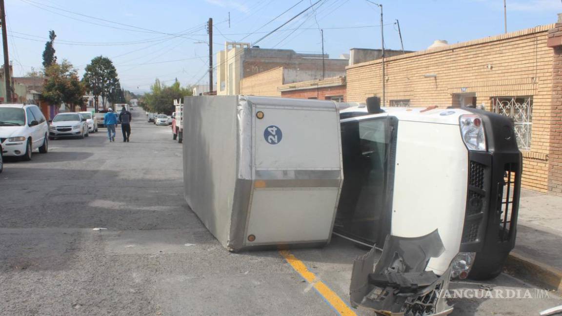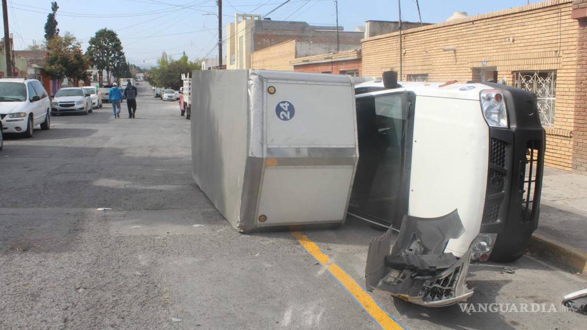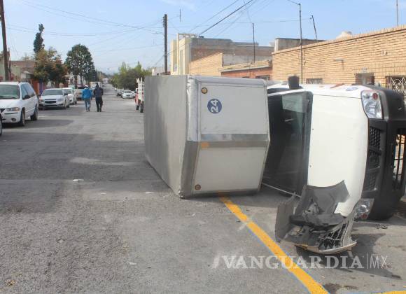 Vuelca a tres cuadras de su casa, taxi lo impactó, en Saltillo