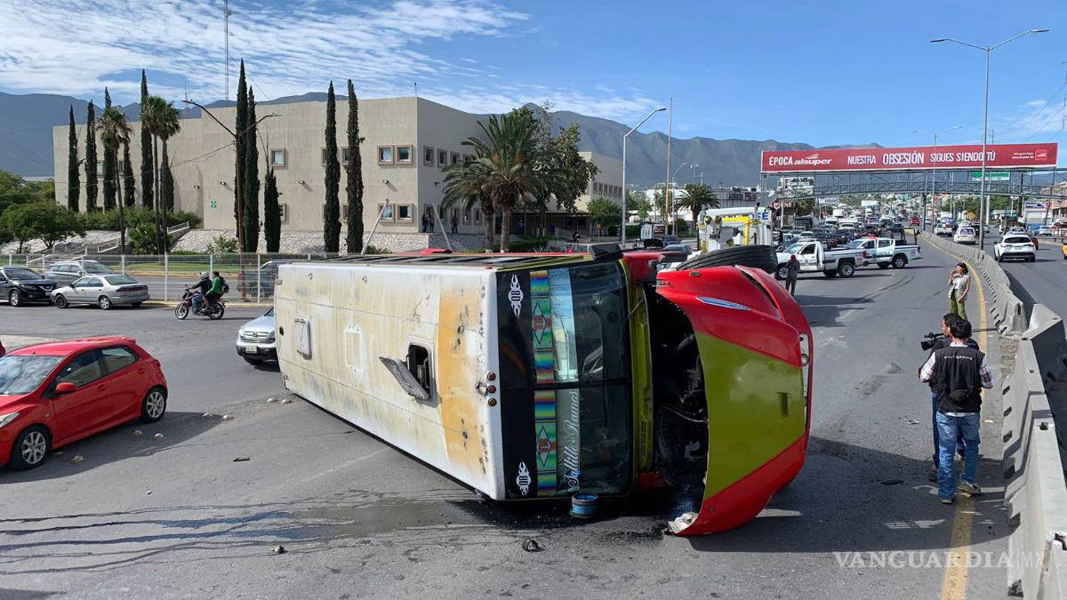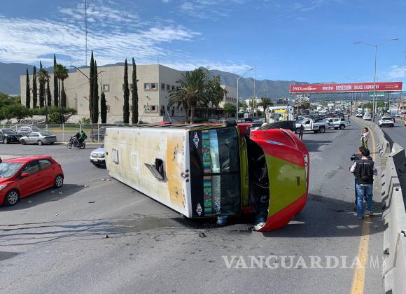 La mañana de este lunes, un camión de la ruta urbana Ramos Arizpe volcó al circular de sur a norte en el periférico Luis Echeverría, aproximadamente a las 8:30 horas, antes de llegar al cruce con la calle Pérez Treviño en Saltillo.