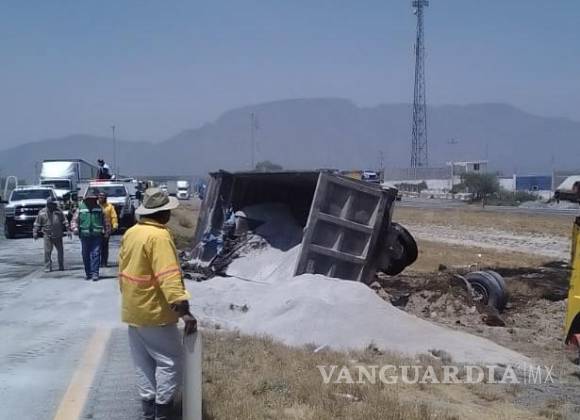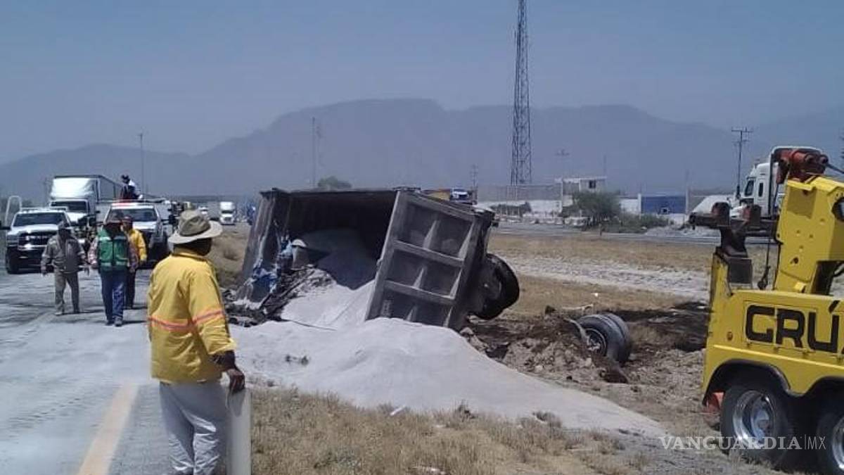 Con múltiples golpes en su cuerpo, el conductor de un camión de carga fue trasladado de emergencia a un hospital de Saltillo luego de un aparatoso accidente en el que el vehículo perdió el control y terminó volcado en el arroyo central de la carretera a Carbonera.